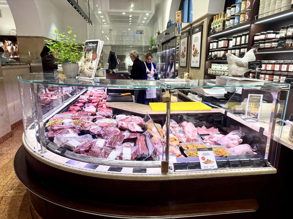 店内に一歩足を踏み入れると、色とりどりの生鮮食品やチーズ、ソーセージ、高級コーヒー、チョコレート、惣菜がずらりと並び、まるで食の宝庫に迷い込んだかのような感覚になります。
