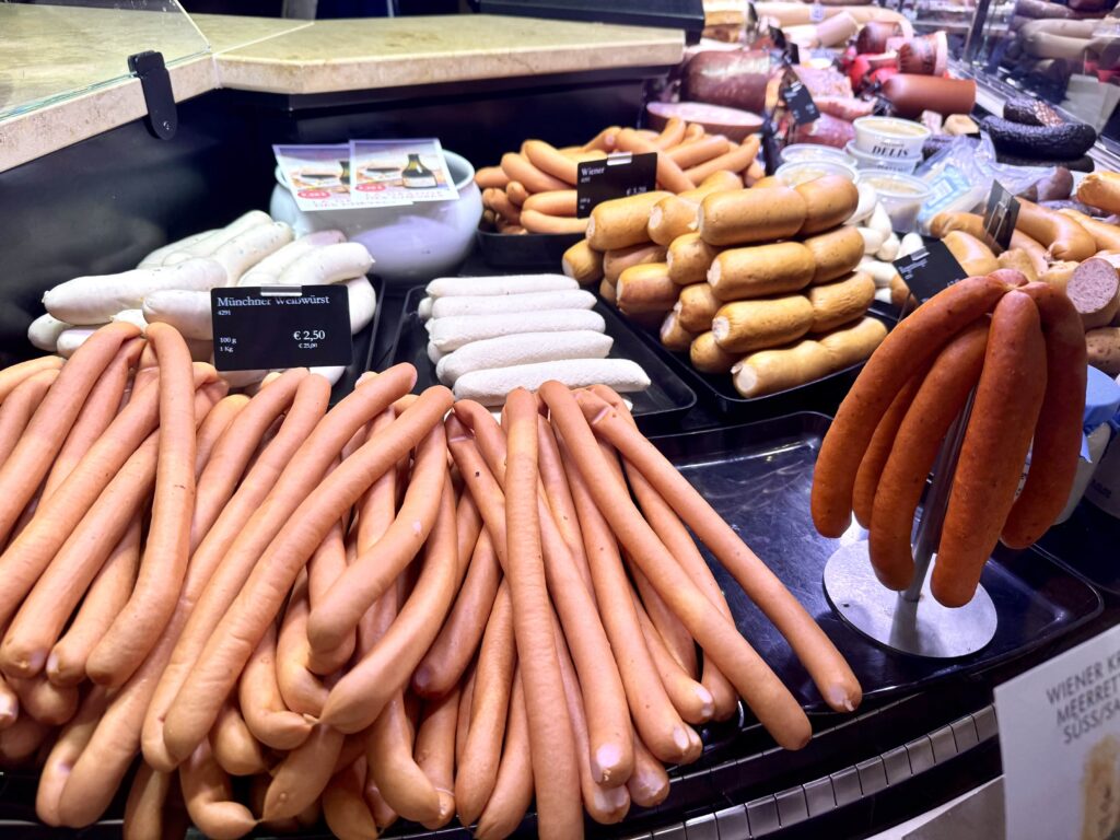 Dallmayrでは白ソーセージ(Weißwurst)やサラミ、ハム、ベーコンまで種類豊富に量り売りされています。