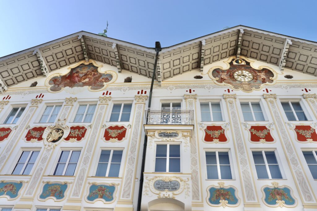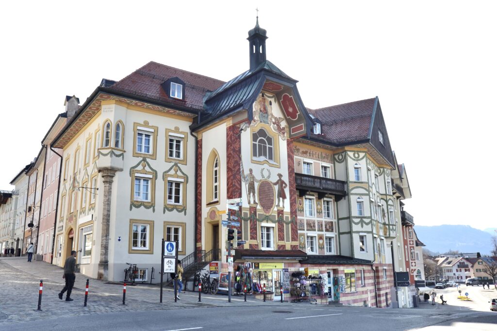 この壁画は、一般的にLüftlmalerei(リュフトルマーレライ)と呼ばれ、特にバイエルン州南部で見られる、建物の外壁に描かれたフレスコ画(装飾的な壁画)のことを指します。