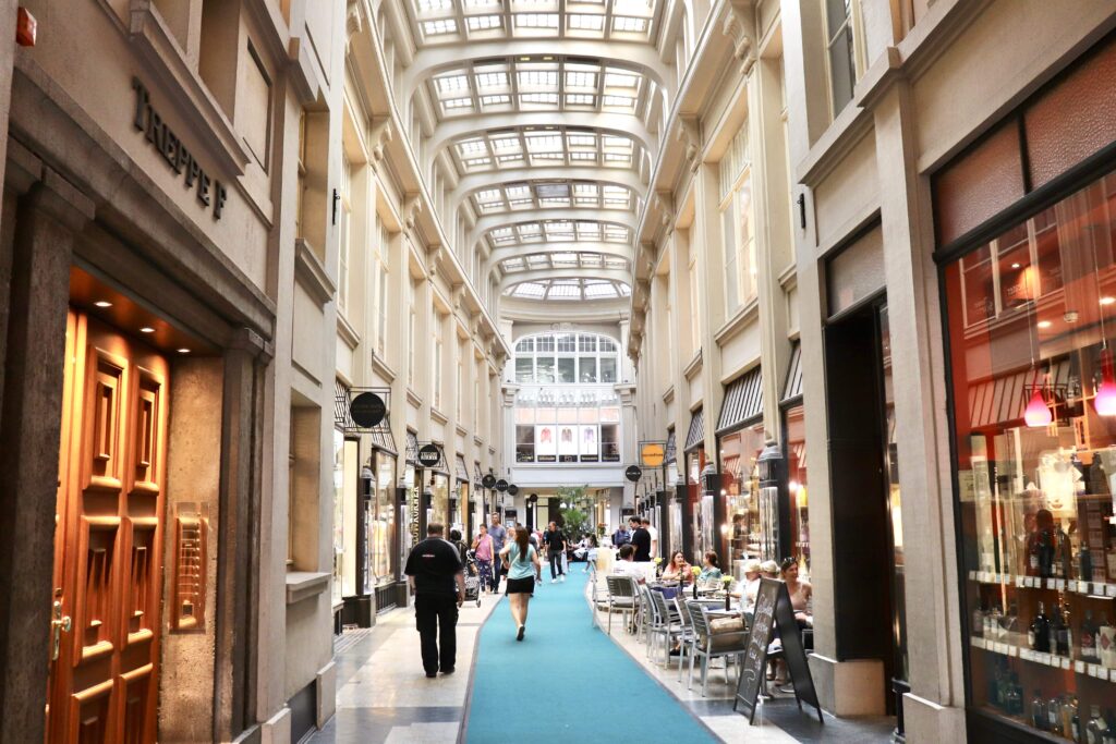 これは1912年から1914年にかけて建設されたショッピングアーケードで、アーチ型のガラス屋根と優雅な装飾が施された回廊は、まるでタイムスリップしたかのような雰囲気を漂わせています。