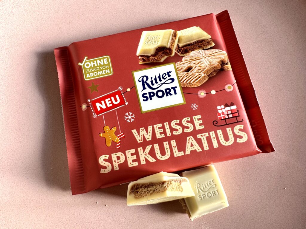 名前の通り、ホワイトチョコレートの中にクリスマスの定番クッキー「Spekulatius(シュペクラティウス)」を砕いて混ぜ込んだフレーバーです。