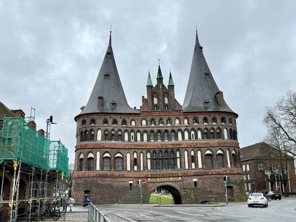 リューベックを代表するランドマーク「Holstentor(ホルステン門)」は、15世紀に建てられた重厚な城門で、町の防衛と威厳を示す役割を果たしていました。